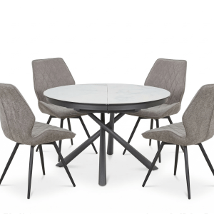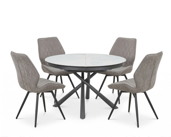 Fenice-ე თანამედროვე დიზაინის მრგვალი გასაშლელი მაგიდა, რომელიც იდეალურად ერგება როგორც სამზარეულოს, ისე სასადილო ოთახის ინტერიერს. მაღალი ხარისხის კერამიკა , მარმარილოს ეფექტის მქონე ზედაპირით, მდგრადია ნაკაწრებისა და მაღალი ტემპერატურის მიმართ. კერამიკის ქვეშ მოთავსებულია 10 მმ სისქის ნაწრთობი მინა, ის მოქმედებს როგორც "ამორტიზატორი", მყარი ლითონის ფეხები განსაკუთრებულ სტაბილურობასა და თანამედროვე იერსახეს სძენს.