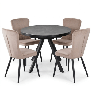 იდეალურია თანამედროვე ინტერიერისთვის. 30 სმ-იანი ცენტრალური ჩანართის წყალობით, მაგიდა შეიძლება გაფართოვდეს 100-დან 130 სმ-მდე დიამეტრში, რაც დამატებით ადგილს გთავაზობთ საოჯახო ვახშმებისთვის ან შეკრებებისთვის. 6 მმ-იანი კერამიკული ზედაპირი მდგრადია ნაკაწრების, სიცხისა და ტენიანობის მიმართ, ხოლო მყარი MDF-ის ძირი უზრუნველყოფს სტაბილურობასა და ხანგრძლივ გამძლეობას.
